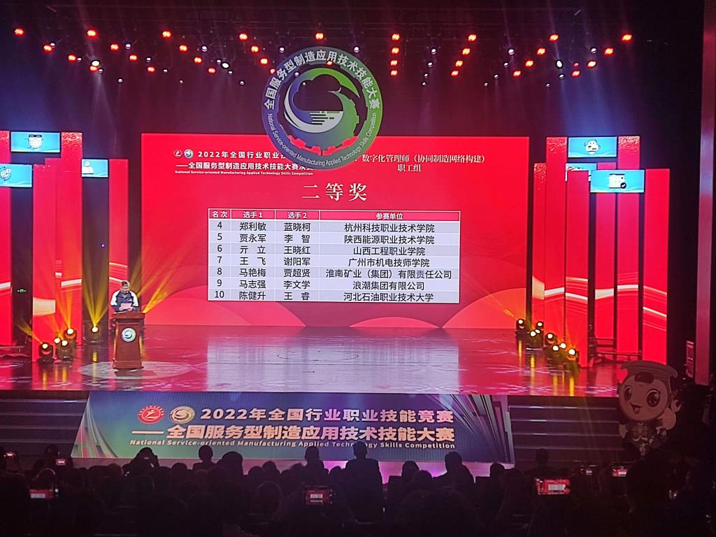 赛事重点围绕生产制造主要环节,设置计算机程序设计员、数字化管理师、物联网安装调试员、服务机器人应用技术员、供应链管理师5个赛项。经过5天的激烈角逐,我校9001cc金沙以诚为本马艳梅、贾超贤两位老师荣获了数字化管理师赛项全国二等奖的优异成绩。