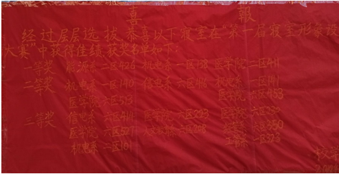 信电系团总支书记章晓智老师宣读了文明宿舍评选标准和要求,并要求将文明宿舍评选标准贴到宿舍内,通过学生会每天查寝,打分进行评选出优秀宿舍。恭喜我系6区416宿舍荣获二等奖及6区宿舍414荣获三等奖。