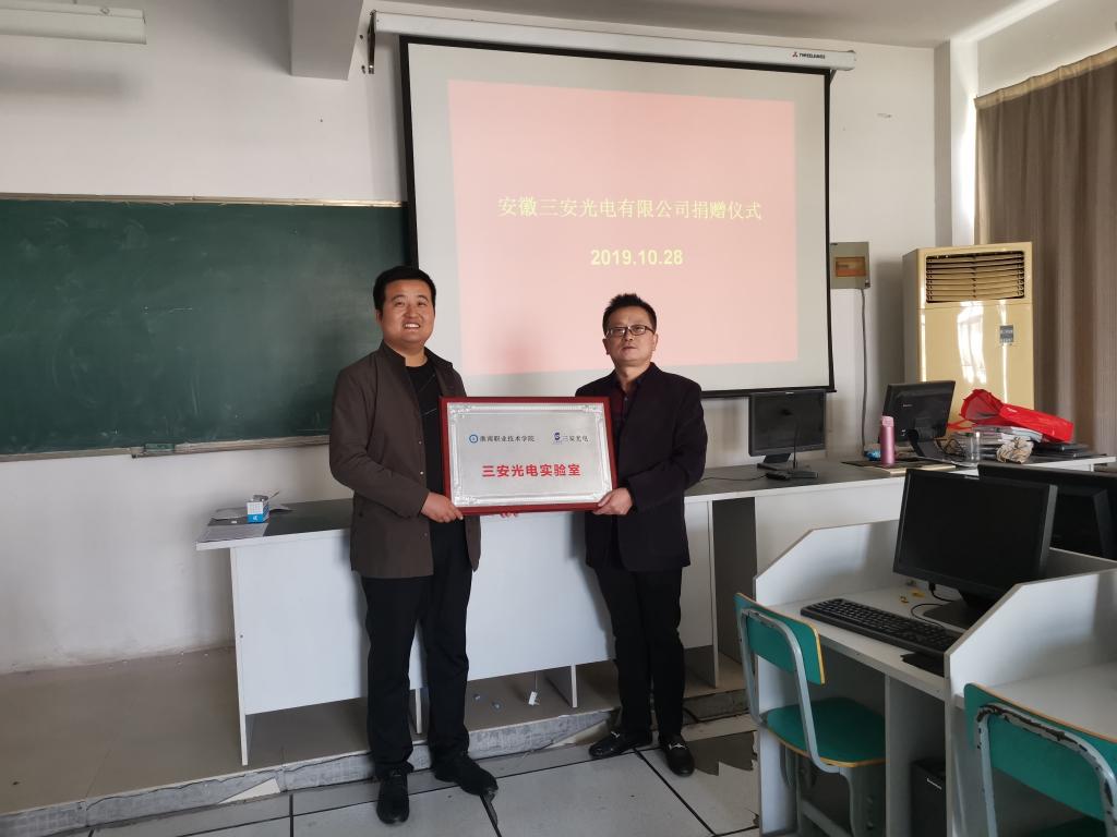 对信电系进行捐赠,双方共建淮职—三安光电实验室。