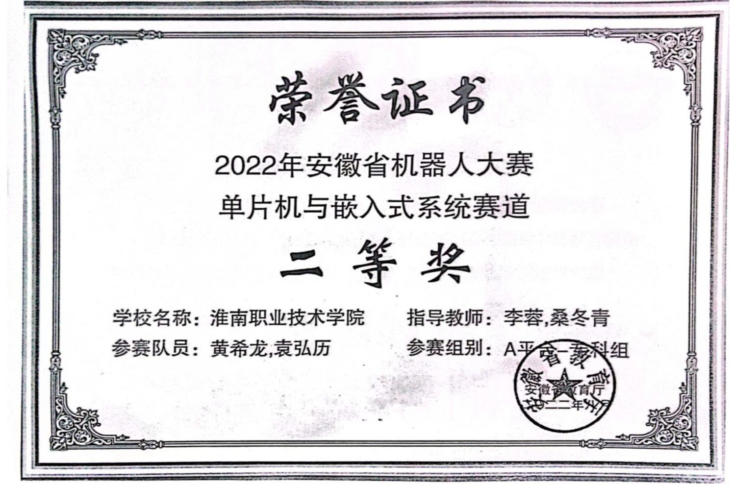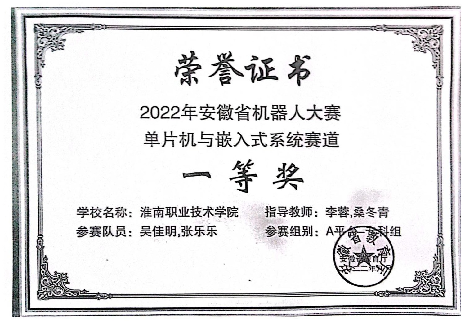 6月12日,由安徽省教育厅主办,蚌埠学院、合肥工业大学、合肥学院承办的2022年安徽省机器人大赛-单片机与嵌入式系统赛道在蚌埠学院及全省各分赛场隆重举行。我校9001cc金沙以诚为本共两支队伍分别荣获一等奖和二等奖。
