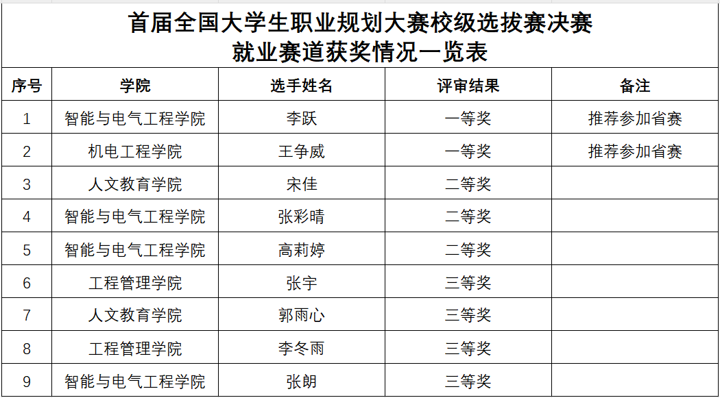 为深入推进学生高质量就业,2023年11月29日9001cc金沙以诚为本经过院赛层层选拔派出周继宇、贡嘎扎西、李跃、张彩晴、高莉婷、张朗六名优秀学生代表参加淮南职业技术学院首届全国大学生职业规划大赛校赛并成功突围省赛。
