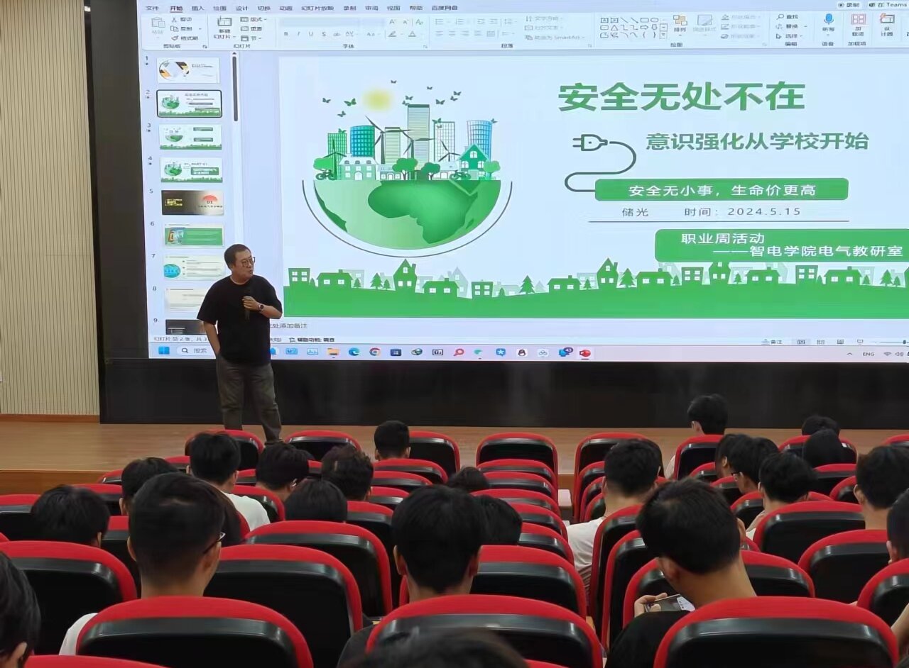 为提高学生电气安全意识,预防电气事故,智电学院针对于电气相关专业学生在校和今后工作中可能会出现的安全问题,于2024年5月15日在1307教室举行“安全无处不在,意识强化从学校开始”电气安全主题讲座。