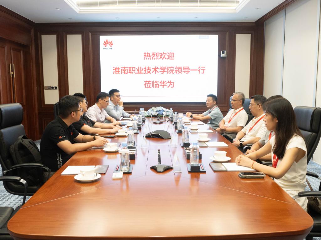 唐国军、刘国锋对袁爱清一行表示欢迎。唐国军介绍了华为在技术创新和人才培养方面的理念和经验,表示希望与淮南职业技术学院继续携手共探产教融合新路径,双方在能源行业的交集,可以共同探索将智慧矿山大模型和典型生产案例相结合,生成行业前沿资源库,以此为契机推动校企融合。刘国锋介绍了讯方技术的发展历程、校企合作成功案例。他表示讯方技术作为高校对接产业的窗口和桥梁,与华为协同致力于推动人才培养与就业有机联动,实现人才供需精准对接,为区域经济发展提供有力人才支撑。