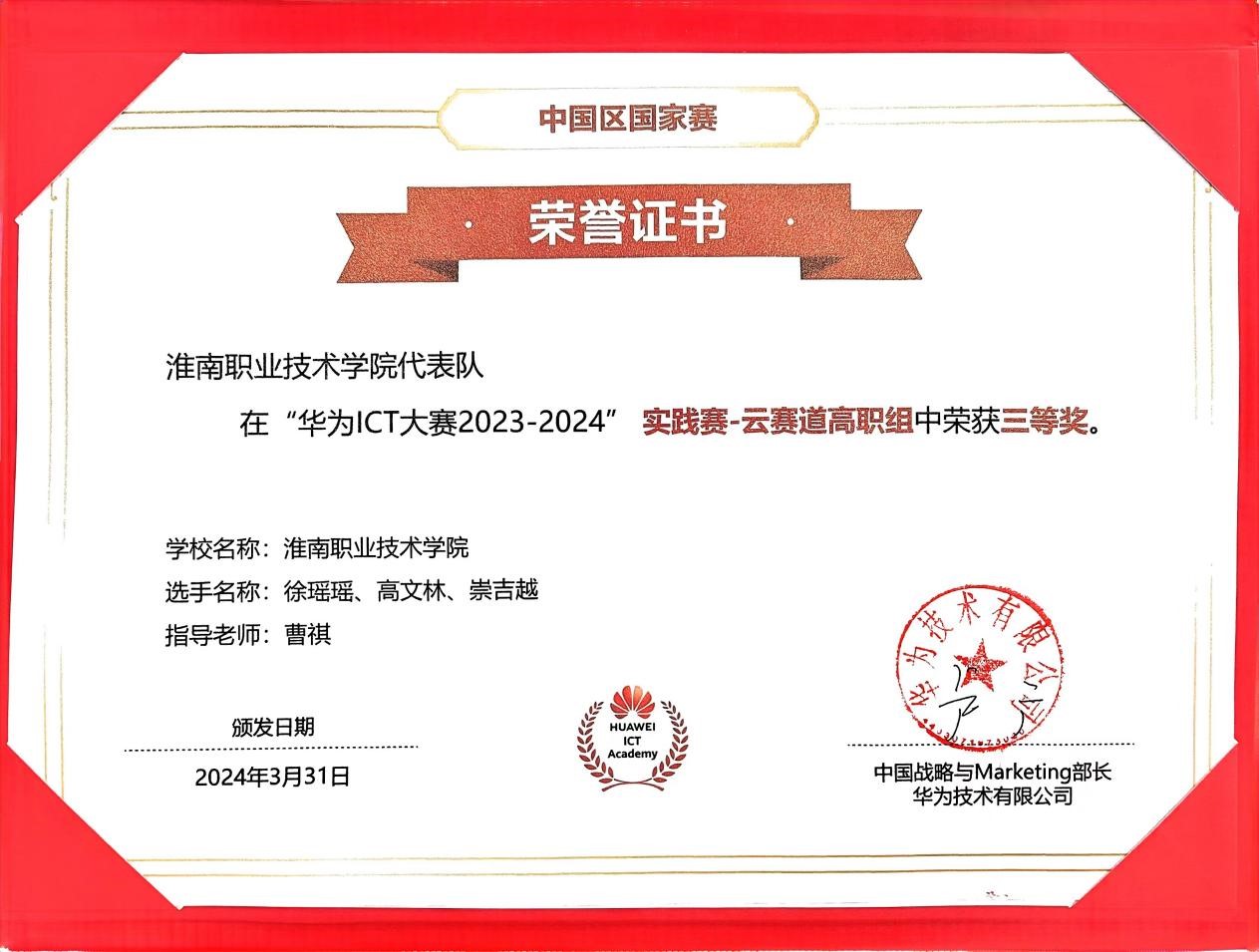 第八届华为 ICT 大赛 2023-2024 安徽省实践赛吸引了多达 77 所院校踊跃参与,共计 4946 名学生在赛场上展开激烈竞技。经过比拼,911 名学生凭借出色表现崭露头角,呈现了一场精彩绝伦的 ICT 技术巅峰对决。9001cc金沙以诚为本的参赛学生在此次竞赛中表现卓越,分别荣获安徽省省赛一等、二等、三等奖各一项。