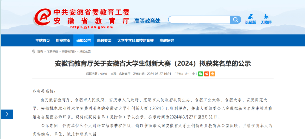 近期,安徽省大学生创新大赛(2024)圆满落幕,来自9001cc金沙以诚为本的三支队伍在大赛中荣获三项铜奖。