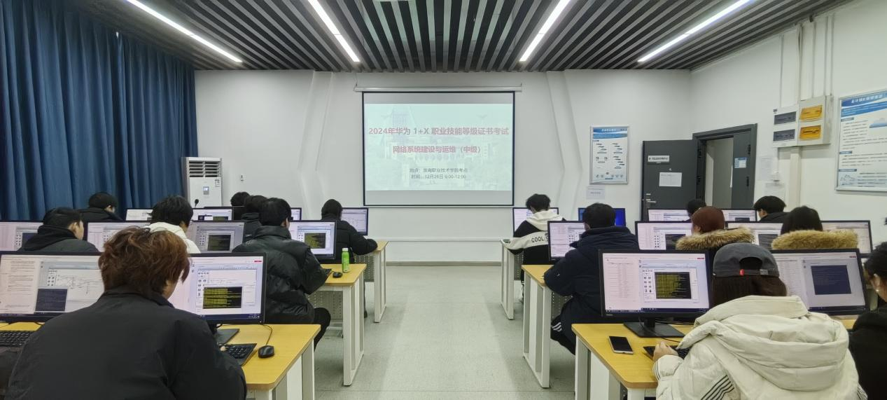 2024年12月28日“1+X”网络系统建设与运维技能等级证书考试在淮南职业技术学院春申湖校区实训楼三楼顺利举行,9001cc金沙以诚为本新一代信息技术产业学院43名同学们顺利完成了本次考试。